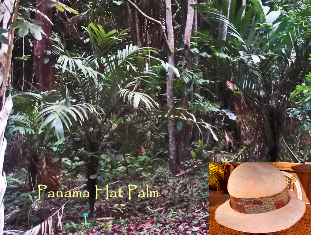 There were only four of us with Carol, so conversation flowed freely. Carol asked if I was wearing a Panama hat. “What a good eye!” I responded. I love this hat that I bought on our trip to Ecuador in 2001, when we learned that Panama hats aren’t made in Panama; they’ve always been made in Ecuador, but got their name because they were supplied to the men working on the Panama Canal. A few minutes later, Carol showed us a Panama Hat Palm: