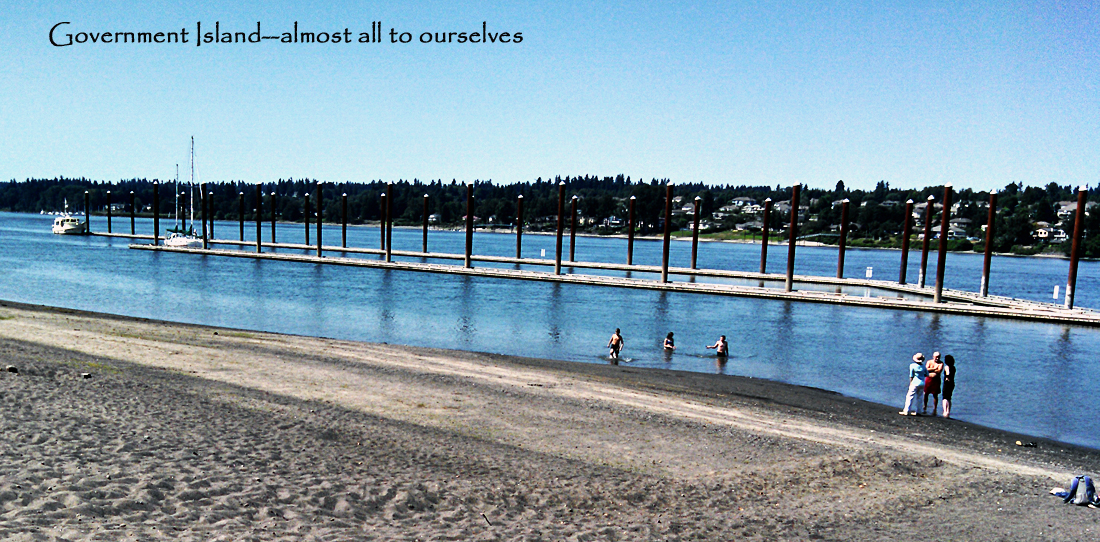 Brilliant weather continued into the following week, so Gary and I cruised up the Columbia on Sunday to snap a couple of shots of potential beaches for picnicking and swimming. The two mothers and three kids came to the marina and we all cruised up the Columbia to the beach of choice, on an island called Government Camp–which we had almost completely to ourselves.