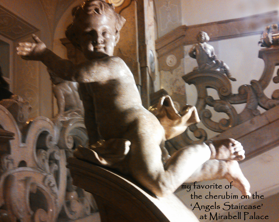 That evening we walked around the corner from our hotel to the main entrance of Schloss Mirabell and up the “Staircase of Angels” for Mozart chamber music in the large gilt-decorated chamber where Mozart himself performed. The music was lovely. We think the audience was almost, if not entirely tourists–including two large groups.