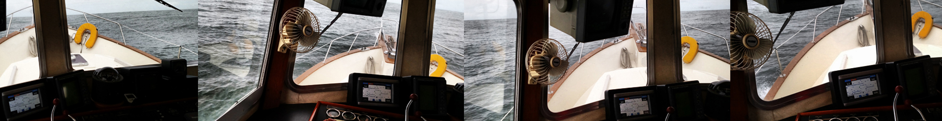 “By that time one of the ‘non-breakable’ dishes had jumped out of its holder & smashed in the sink; bottles were rolling against the wine cupboard door,causing it to spring open and bang around; the guest cabin closet door was banging; pans slid out from under the cooker and crashed on the floor; water bottles and anything else loose was sliding around and we were rolling so bad I was getting seasick.