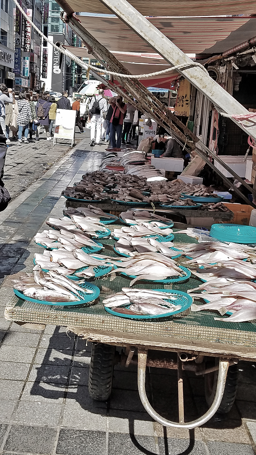 Our next stop was Jagalchi Market–the biggest fish market in Korea. This makes sense: it’s the biggest one I’ve seen anywhere.