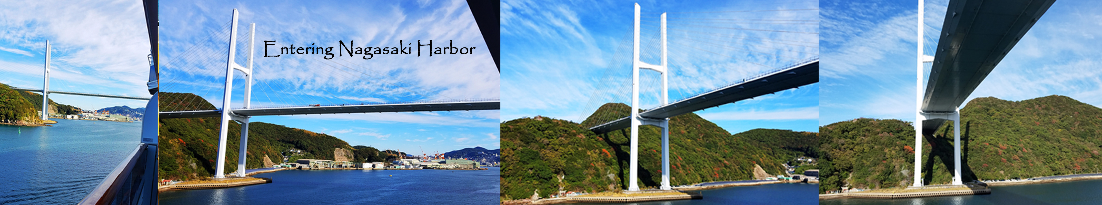This 17th century image of Nagasaki harbor conveys the same impression of an expansive sweep of calm, safe water that we experienced in November–except, of course, that we went under a bridge.