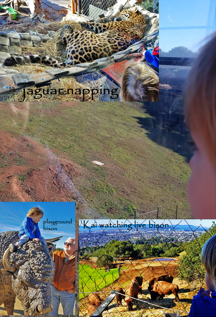 We had a nice holiday dinner with my son John, who lives in Berkeley, before settling into fun with Kai, which included the circuit around Lake Merritt: him on scooter, us walking; a day at the Chabot Space & Science Center, and adventures at the Oakland Zoo..