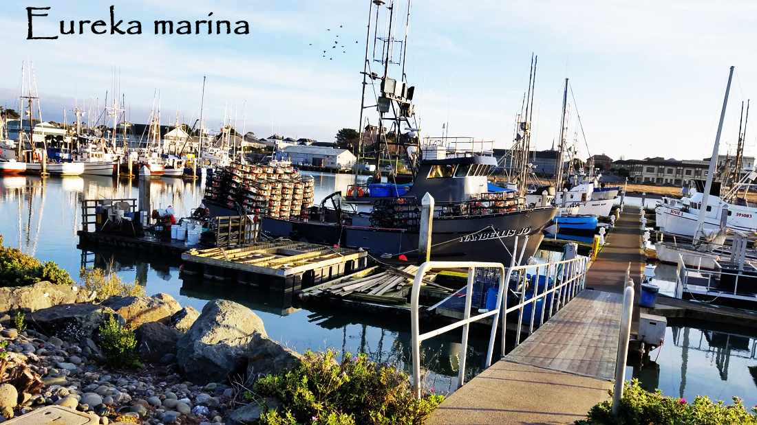 We indulged in more nostalgia on our stop in Eureka on the way home. First we saw that the marina that was as far north as our boat Annikin went on her own bottom was much more full of commercial fishing boats than when we were there in Sept. 2001.