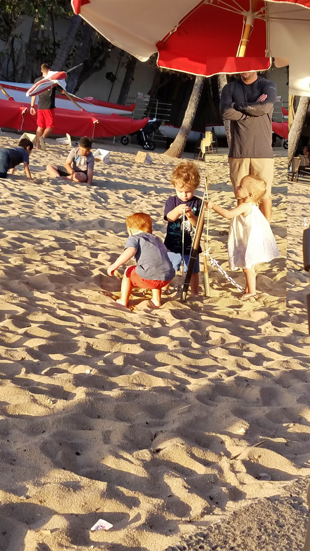 For not quite two—and twins at that—Myles and Julian are very sociable. They have fun at the Outrigger Club without getting wet. And their parents enjoy being able to watch without having to hover too close.