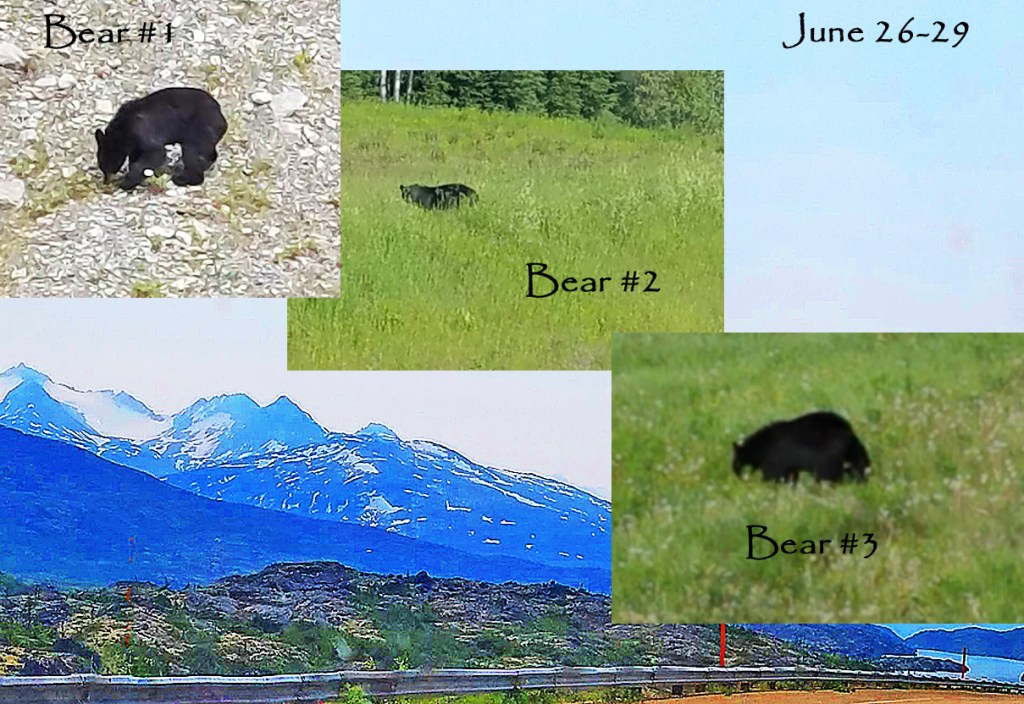 We saw wildlife at fairly close quarters. For some reason, the bears never raised their heads–at least, not while I was watching.