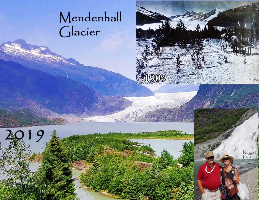 Much later (of course) we drove and then hiked to view spectacular but frighteningly shrinking Mendenhall Glacier and nearby Nugget Falls.