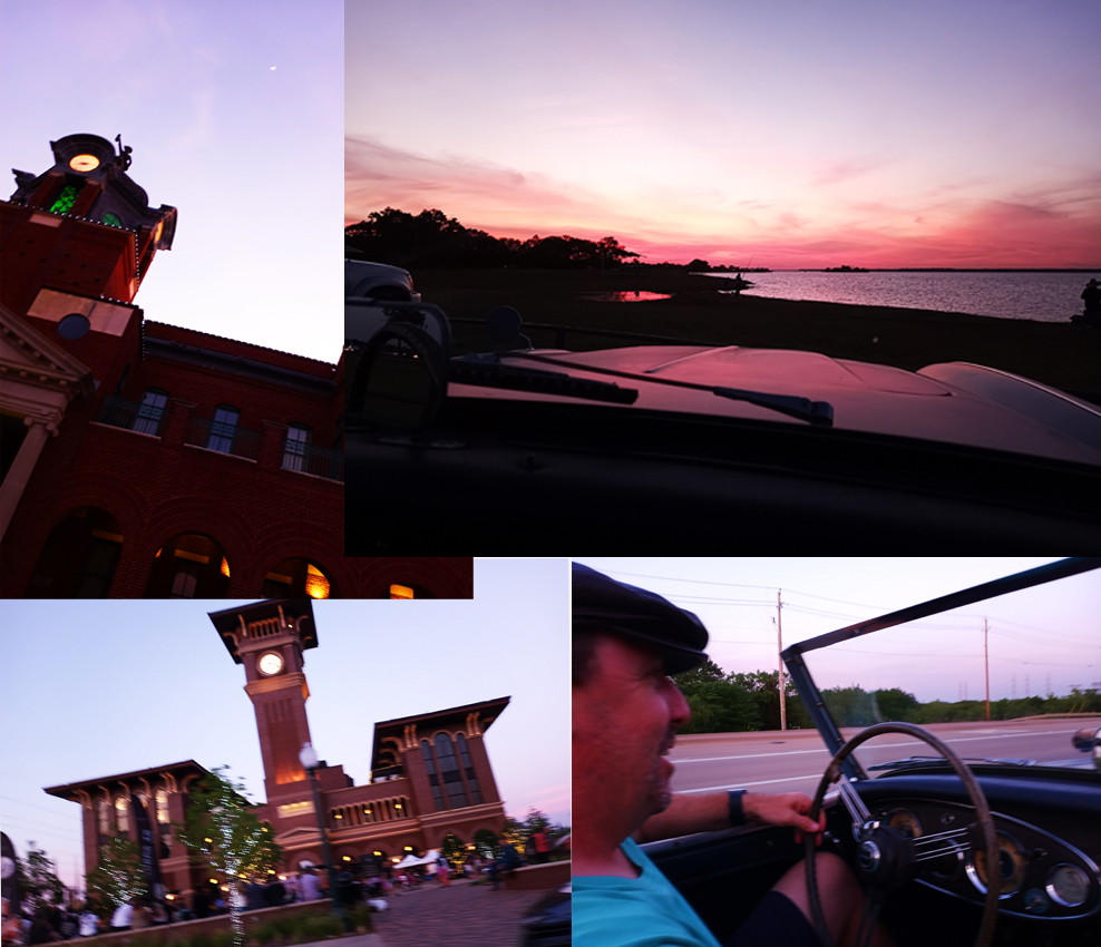I must admit, the highlight of the evening for me was when Cody gave me a short tour of Grapevine’s Old Town and the lake front, riding in the 1956 Austin Healy 100-6. Our father bought it when he was stationed in London, England. Cody’s been taking very good care of the car since the early 2000’s.