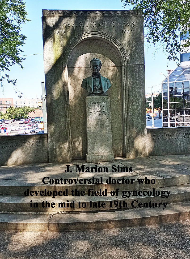 The next morning, we drove into downtown Columbia, to see the South Carolina state capitol. On the grounds in front of the Capitol, I was surprised to see a monument to the physician who developed gynecology, J. Marion Sims. It turns out that he believed that African Americans did not feel pain and developed his surgical techniques on slave women without the benefit of anesthesia. Two other monuments to him have been dismantled.