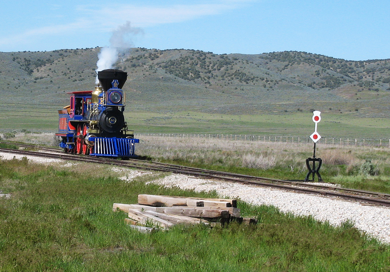 John dreamed of going to work on the Transcontinental Railroad. I imagine he felt at least a twinge of regret when he read on May 11, 1869, that in Promontory Summit, Utah, the day before “At noon local time, the Utah telegraph operator signaled with three dots that the silver sledge hammer had driven home the Golden Spike. Simultaneously, bells pealed over the US Capitol Building in Washington D.C. as cannon roared over San Francisco’s Golden Gate.” We went to Golden Spike National Historic Site to see where it happened, and thought of John as we watched the replica of the gorgeous 4-4-0 Jupiter steam over from the round-house. Yes, the original engine was painted the same way.