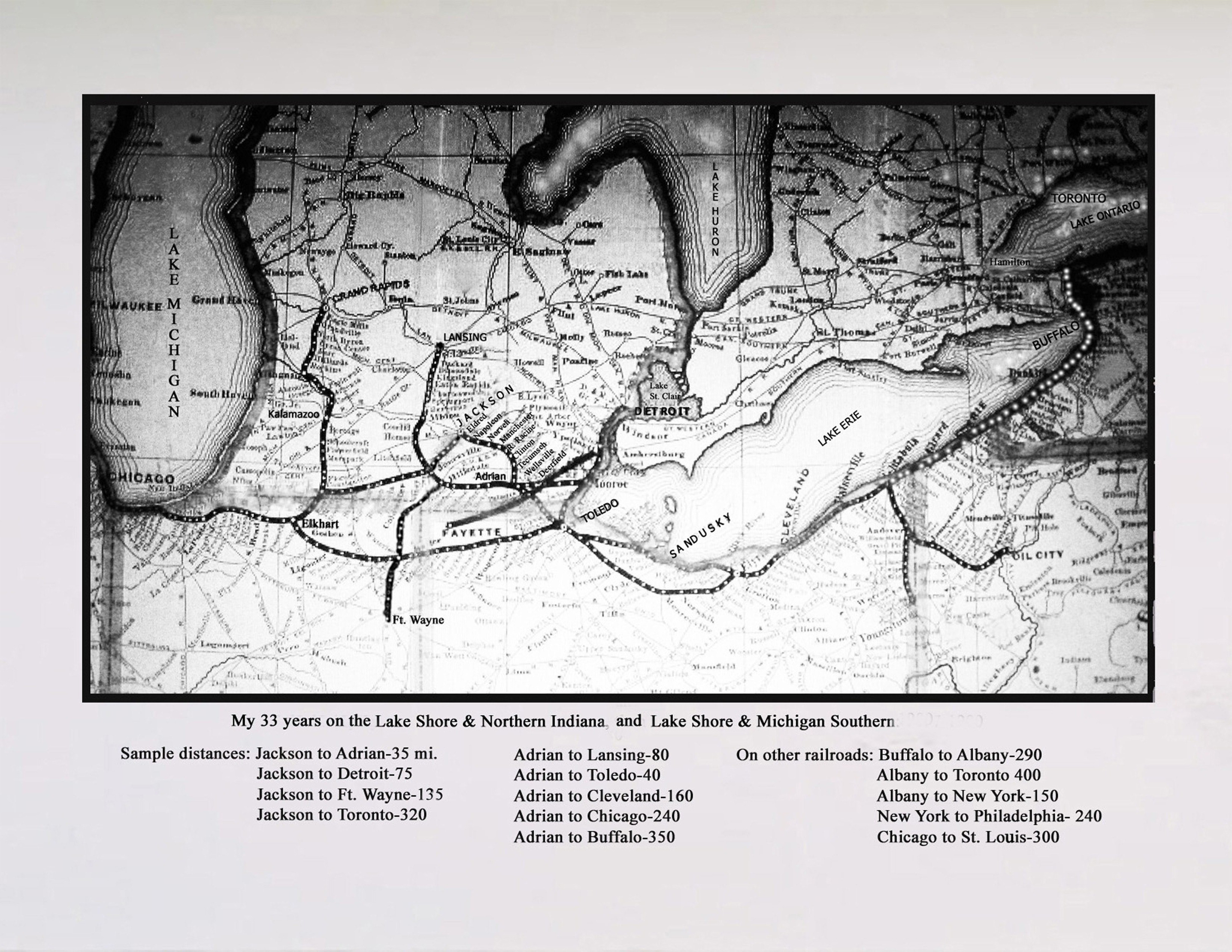 This final map sets John’s adult life in its geographic perspective–and you can trace his cherished run from Ft. Wayne through Hillsdale and Adrian to Jackson. This is a small segment from a much larger cartographic image I found at–and paid to download from—David Rumsey Historic Mapworks.